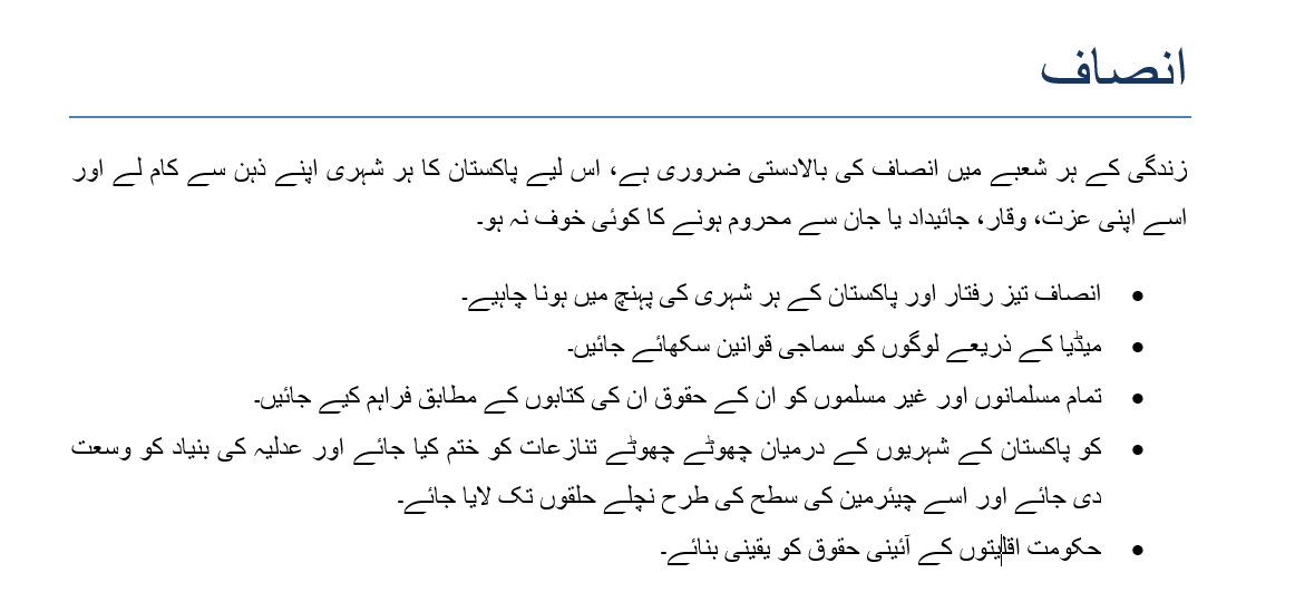 • Justice must be speedy and in the reach of every citizen of Pakistan.